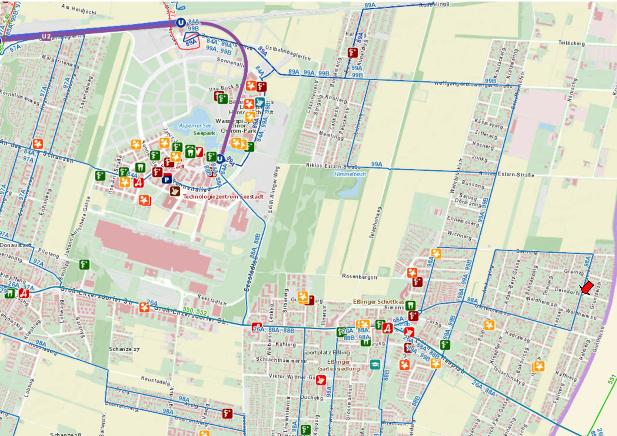 Die Deindorfstraße befindet sich im 22. Bezirk (Donaustadt) im Nordosten Wiens – einer beliebten Wohngegend, die eine gelungene Verbindung von städtischer Infrastruktur und naturnaher Wohnqualität bietet. Das Umfeld ist geprägt von moderner Wohnbebauung, gepflegten Grünflächen und einem ruhigen, familienfreundlichen Charakter.